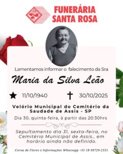 Há dois sepultamentos programados para esta sexta-feira, dia 31 de outubro, no Cemitério Municipal da Saudade, em Assis.