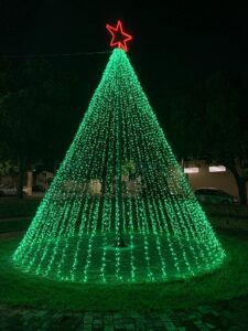 A Mamãe Noel estará recebendo as doações na árvore iluminada (foto abaixo), montada na praça São José Operário, na vila Operária, das 19 às 22 horas.