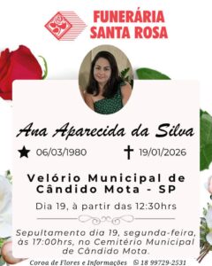 REGIÃO – Na vizinha cidade de Cândido Mota, será sepultada Ana Maria da Silva (foto abaixo), de 45 anos, que está sendo velada no Velório Municipal.