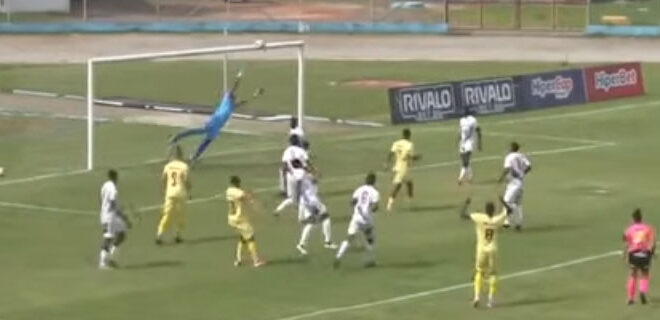 O VOCEM teve uma grande chance para abrir o placar no primeiro tempo, quando o meio-campista Vinícius acertou um chute forte da entrada da área e a bola passou raspando o travessão defendido por Luan Barreto (foto abaixo).
