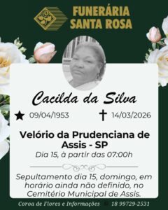 Há dois sepultamentos programados para este domingo, dia 15 de março, no Cemitério Municipal da Saudade, em Assis.