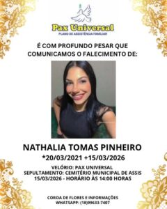Às 14 horas, será sepultada a jovem Nathália Thomás Pinheiro (foto abaixo), de 25 anos, que está sendo velada no Centro Funerário Pax, na rua Smith Vasconcelos, na esquina do Hospital Regional, de onde sairá o féretro às 13h30.