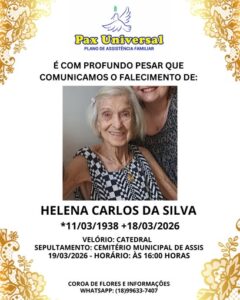 Também no final da tarde, às 16 horas, será sepultada a senhora Helena Carlos da Silva, de 88 anos (foto abaixo), que está sendo velada na Catedral, de onde sairá o cortejo fúnebre às 15h30.