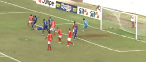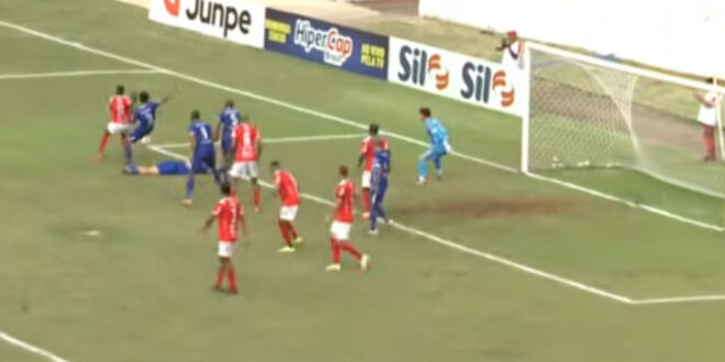 Aos 45 minutos, após cobrança de escanteio do América, o zagueiro Danilo Medola, do Assisense, atingiu o atacante Denner, do ‘Diabo’, dentro da área (foto abaixo). Bom posicionado, o árbitro Denner Wiliam da Silva marcou a penalidade máxima.
